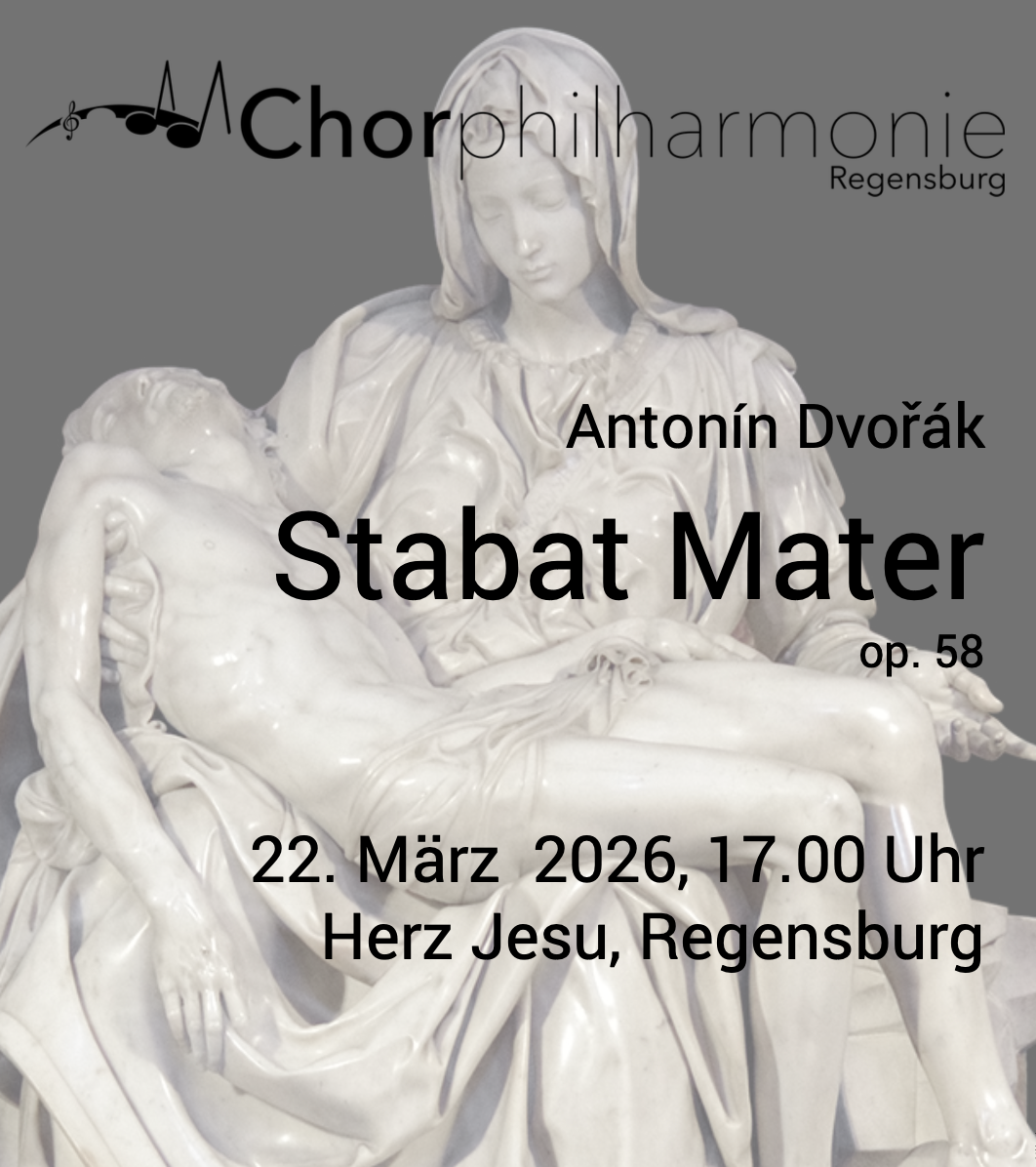 Fühlt mit, lasst euch berühren und hört dieses Meisterwerk von Antonin Dvořák mit groß besetztem Orchester und Chor der Chorphilharmonie Regensburg unter der Leitung von Horst Frohn.
